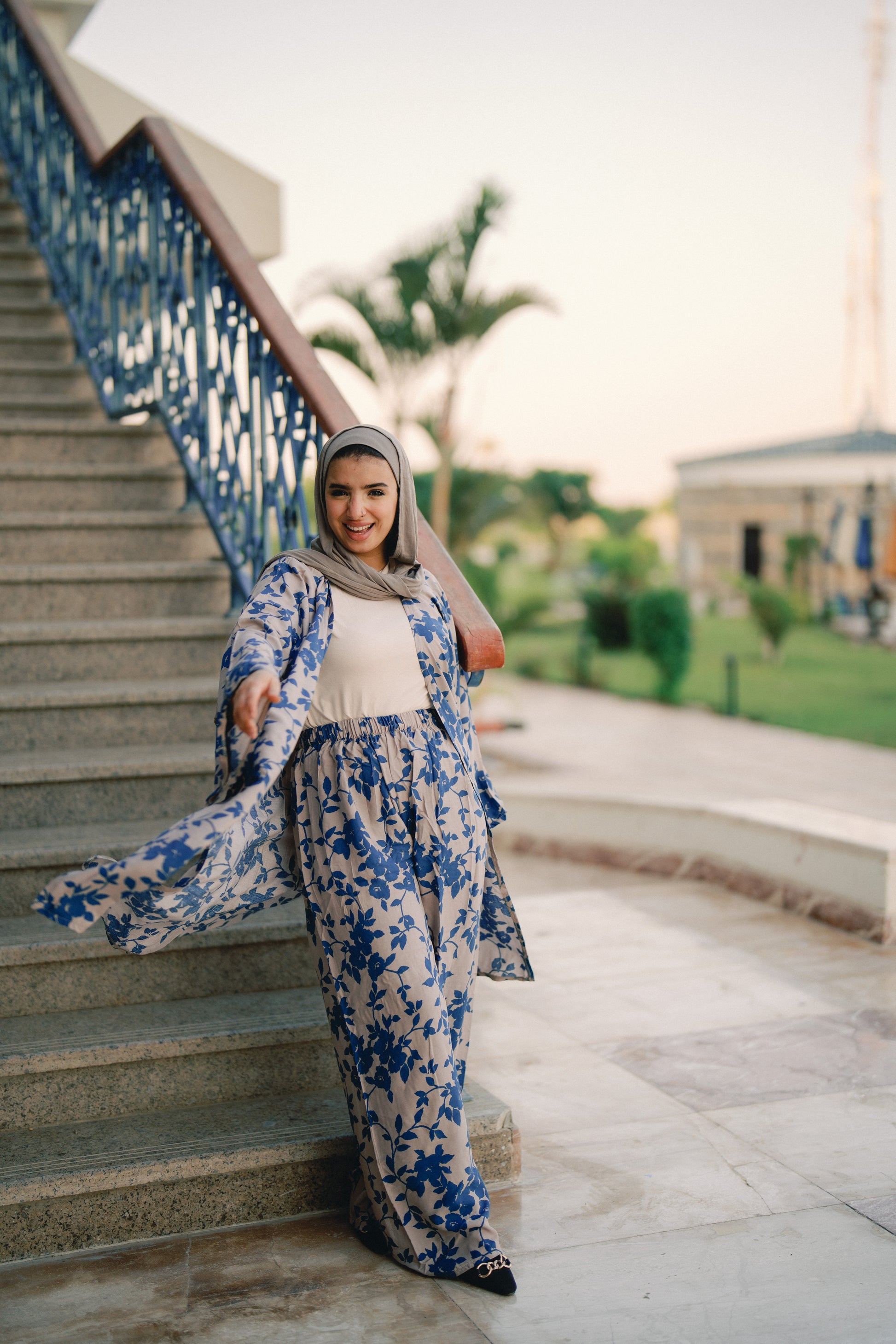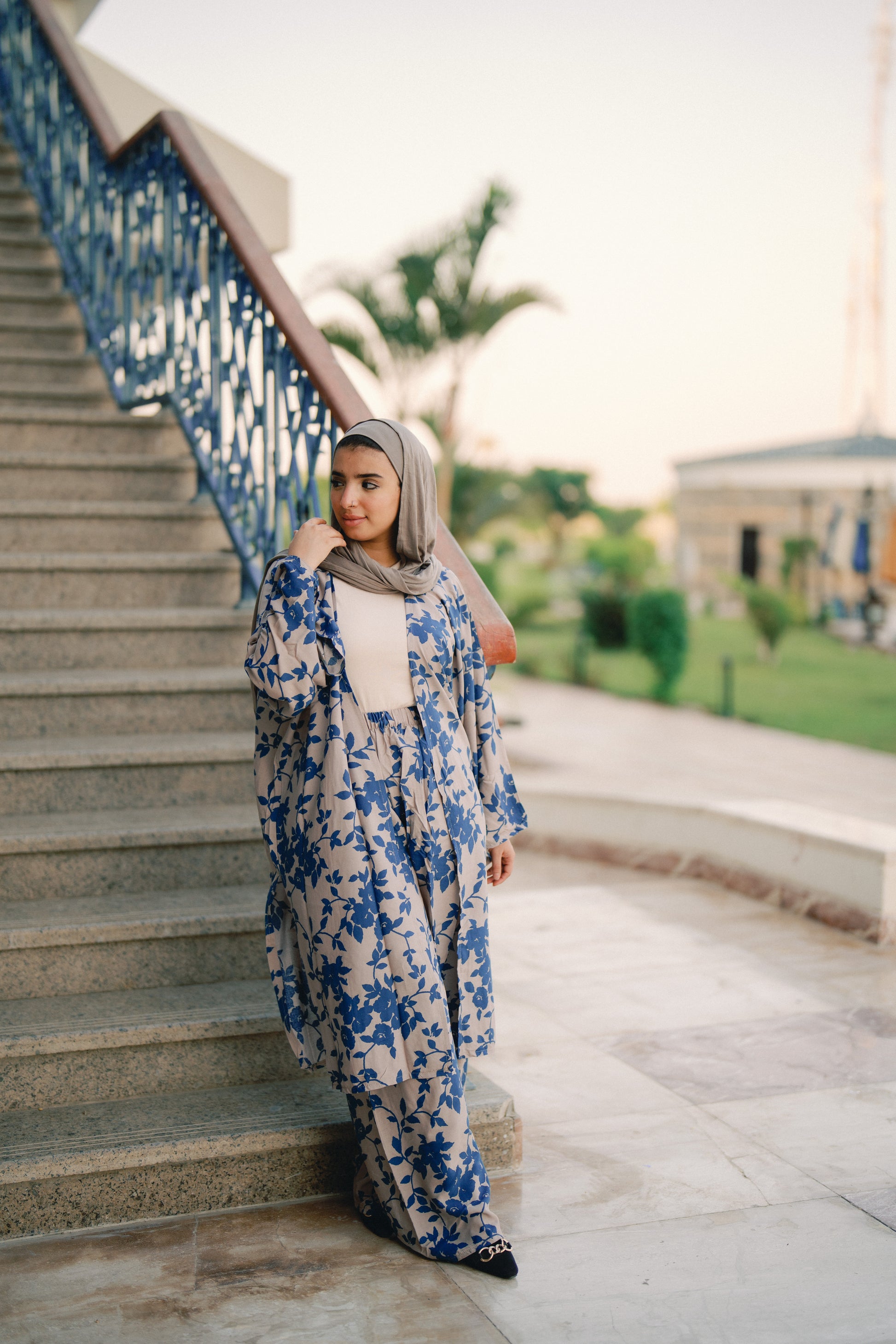 Suits - grey & blue flowers